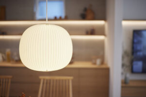 繊細なプリーツが美しいこちらの照明は『LAMELLA(ラメラ)』といいます。ラメラとは、きのこの裏側にあるひだの生物学的名称で、デザインを手がけたタカギ&ホムスベットが、きのこの傘の裏に広がるひだの美しさをヒントにデザインしたそうです。言われてみるときのこの裏側によく似ていますね。そんな自然の造形美をモチーフにした繊細なプリーツが、光を柔らかく拡散し、空間全体にやさしい表情を与えてくれます。