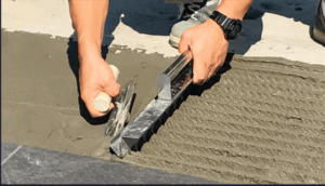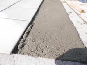その上からパサモルタルで高さを調整しながらタイルを張り合わせていきます。